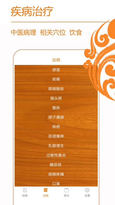几十种常见病的病理原因,中医治疗方法,饮食疗法,并可以自行添加备注。